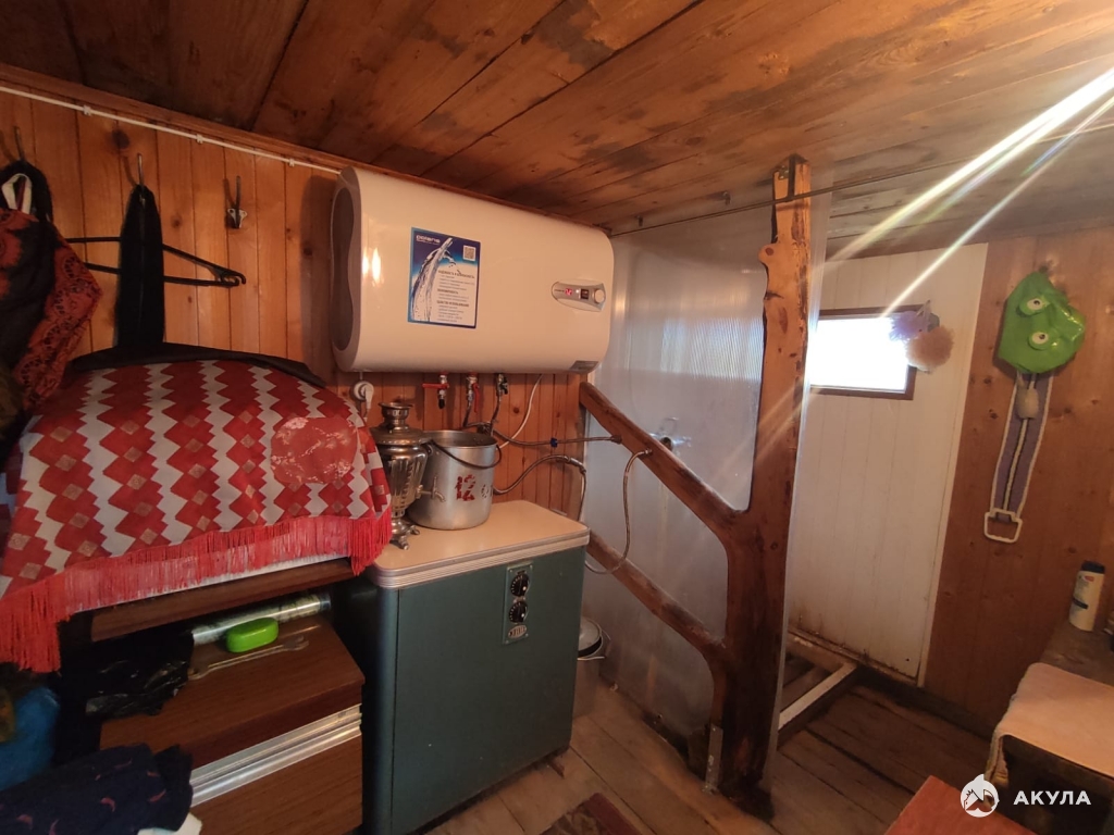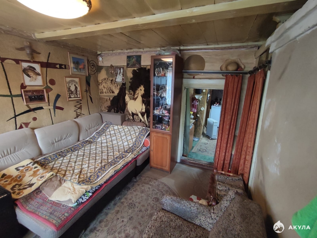 Дом : 1-этажный (бревно), назначение-жилой, площадь- 50, 9 кв.м. В доме 3 комнаты + кухня. + пристроен навес для автомобиля. Отопление: действующая печка. Из коммуникаций: электричество, скважина с питьевой водой, газ в баллонах.
